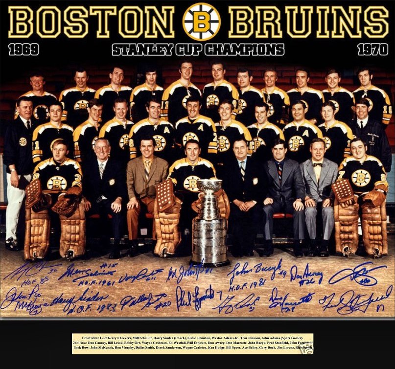 Their season was defined by the brilliance of Orr, who smashed several scoring records and collected a display case full of silverware. By March, Orr had become the first defenseman to reach 100 points in a season and he finished the campaign with a League-leading 120, becoming the first blueliner to win the Art Ross Trophy. He also collected the Hart and Norris trophies and First Team All-Star honors. The great No. 4 later added the Conn Smythe Trophy as playoff MVP, setting League records for goals and points by a defenseman in a postseason (9-11--20). Putting the finishing touch on an already-extraordinary campaign, Orr scored the Stanley Cup-winning goal 40 seconds into overtime in Game 4 against St. Louis. With Orr flying through the air, his winning tally is among the most iconic images in hockey history.
